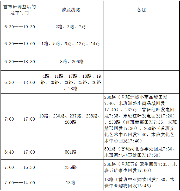 5.通養(yǎng)老服務(wù)中心班次:12路,2月15日—18日(三十至初三)首班車6:12(火車站)調(diào)整為6:30,其余班次不變;14路,2月15日—18日(三十至初三)首班車6:00(公司公司)調(diào)整為6:30,。